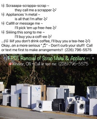 CUSTOMER PICK UP HOURS. Scrap metal removal- Scrap metal pick up in Hamilton hml Hamilton pic hide this posting restore restore this posting. FREE SCRAP and APPLIANCE PICKUP Text 226-234-8562 for fastest reply.